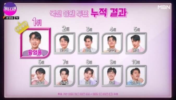 변함없는 실력으로 누적투표 1위를 유지 중인 황영웅이 불타는 트롯맨 결승진출자 명단에 올랐습니다. 실력과 비주얼을 갖춘 트롯맨 100팀이 불타는 트롯맨 방송에 출연하며, 결승 진출자들은 오픈 상금제를 향한 트로트 대결을 진행하고 있습니다. 나는 자연인이다로 유명한 채널인 MBN에서 불타는 트롯맨을 매주 화요일 오후 9시 40분에 방영하고 있습니다.